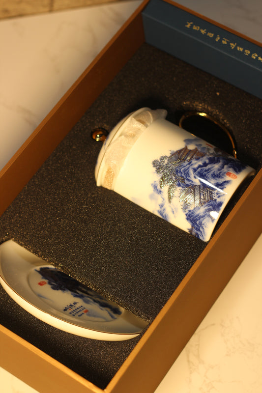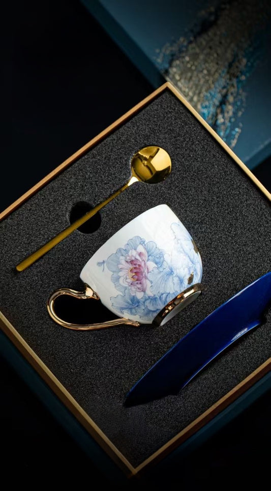 高軒杯 - 幻藍金魚(德化玉白瓷)