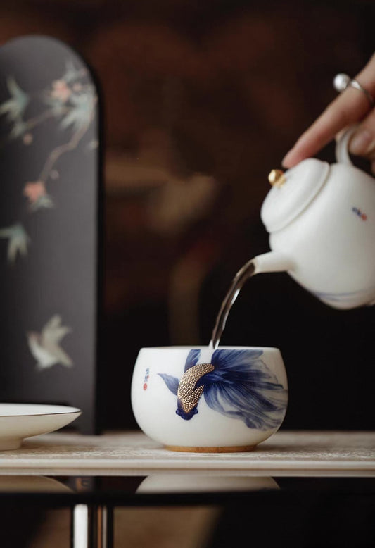 禪定杯 - 幻藍金魚(德化玉白瓷)